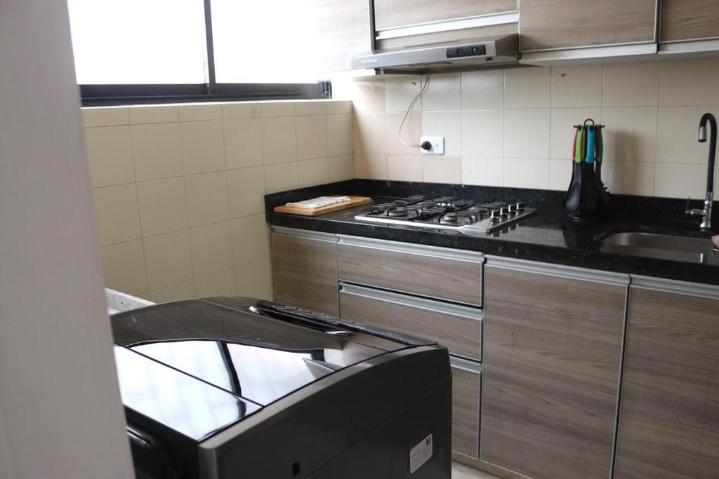 Kitchenette, Refrigerator, Microwave, Washing machine, Kitchen, Kitchenware, Cleaning products, Coffee machine, Dining table