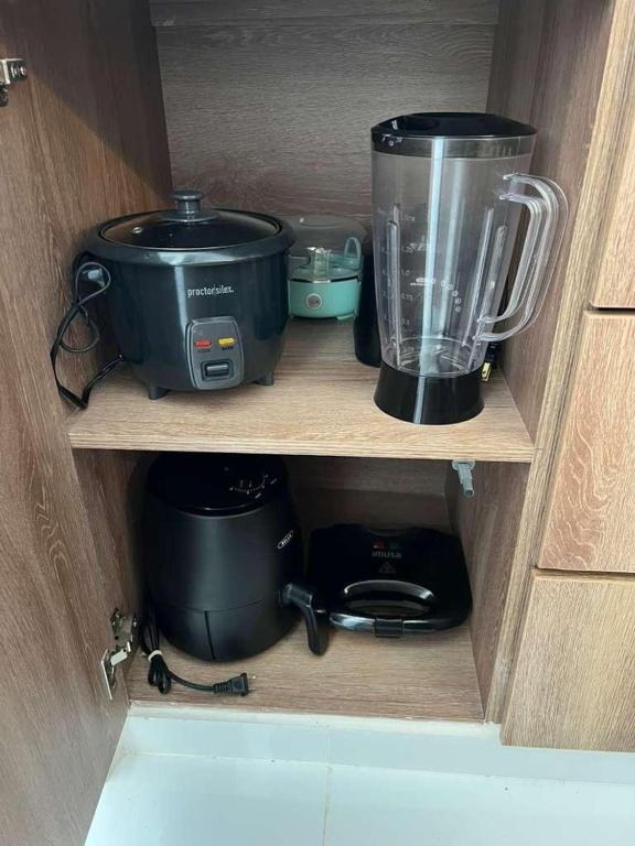 Kitchenette, Refrigerator, Microwave, Washing machine, Kitchen, Electric kettle, Kitchenware, Dryer, Stovetop, Cleaning products, Coffee machine, Wine glasses