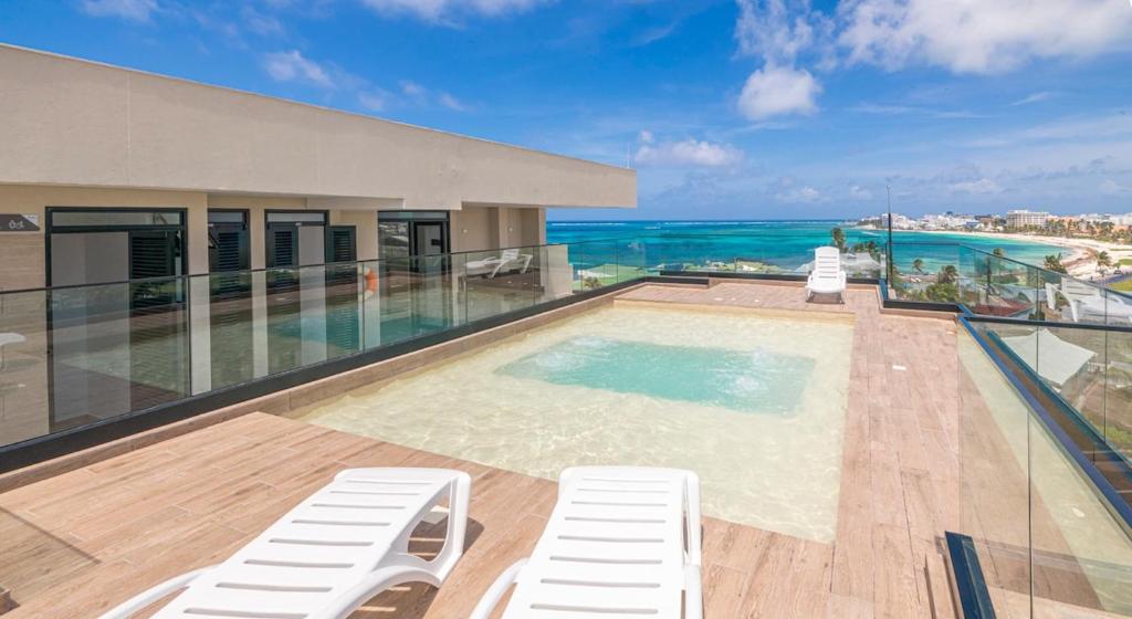 A jacuzzi is available on site at Luxury new apartment with balcony close to beaches.